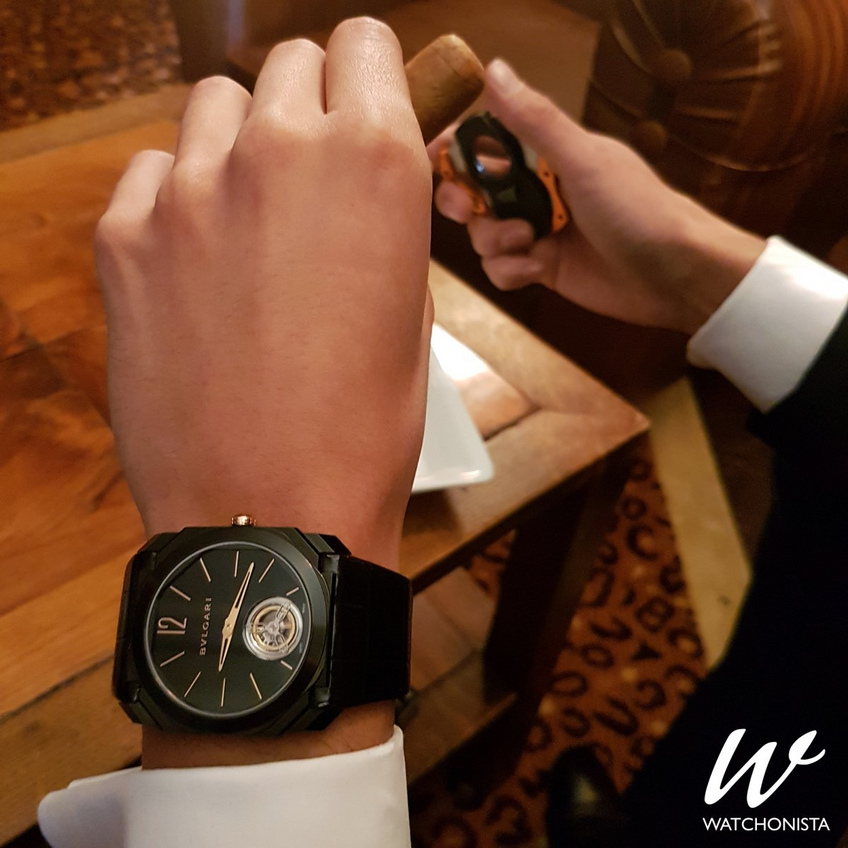All of Bulgari’s ultra-thin pieces exude a general feeling of homogeneity and modernity. Deliberately isolated from the standard ultra-thin watches of an urban elegance and normally reserved to aesthetes and formal evenings, the Finissimo pieces by Bulgari offer an honest display that is more in tune with contemporary requirements. The watches are refined and aimed at demanding and self-confident men, but also sport both formal and casual codes. Elegant Italians will most likely evoke "sprezzatura", which is a very sophisticated and studied form of relaxation that Stendhal has admired since he started travelling to Italy.